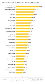 ADAC Reichweitentest E-Autos im Winter: So viel Reichweite lässt sich in 20 Minuten nachladen.