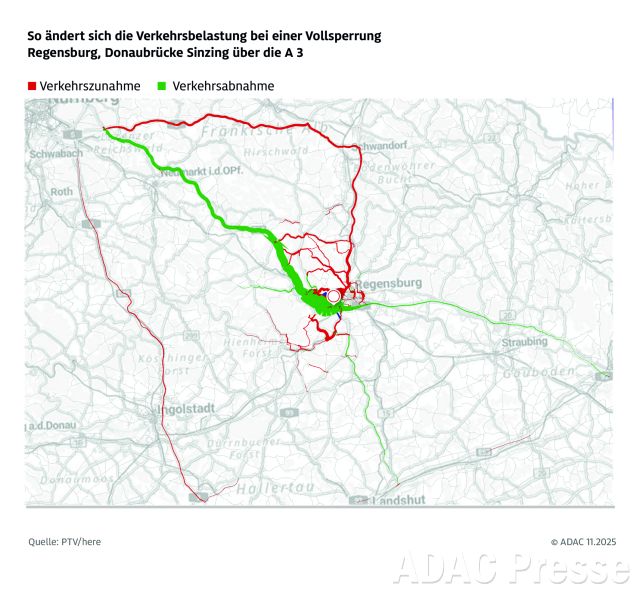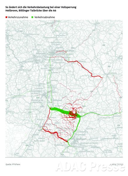 ADAC Modellstudie zeigt anhand von fünf Brücken an Autobahnen und Bundesstraßen die massiven Auswirkungen von spontanen Sperrungen auf Verkehr und Volkswirtschaft