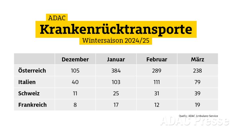 Gesetzliche Krankenkasse zahlt in vielen Fällen nicht / Auslandskrankenversicherung übernimmt Kosten für Bergung und Krankenrücktransport / ADAC bringt im Winter rund 1.500 Verletzte in die Heimat