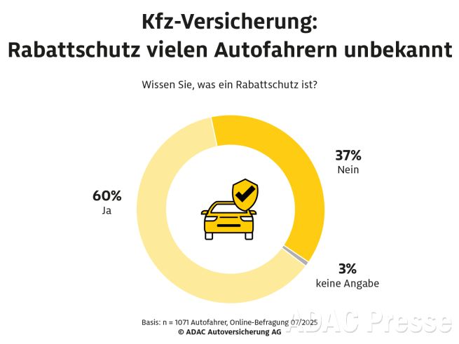 Neben den Gefahren für Leib und Leben können Verkehrsunfälle kräftig ins Geld gehen. So fallen häufig nicht nur Reparaturkosten für das Fahrzeug an, nach selbst verschuldeten Unfällen wird oft auch der Versicherungsschutz automatisch teurer. Verhindern kann dies ein sogenannter Rabattschutz, manchmal auch Rabattretter genannt, den Autofahrer in ihrem Versicherungsvertrag vereinbaren können. Laut Umfrage der ADAC Autoversicherung wissen allerdings 37 Prozent der Autofahrer nicht, was ein Rabattschutz überhaupt ist. Bei den unter-40-Jährigen ist er sogar jedem Zweiten (53 Prozent) unbekannt. Gänzlich anders sieht das Bild bei den über-60-Jährigen aus: 70 Prozent von ihnen kennen diesen Baustein der Kfz-Versicherung.