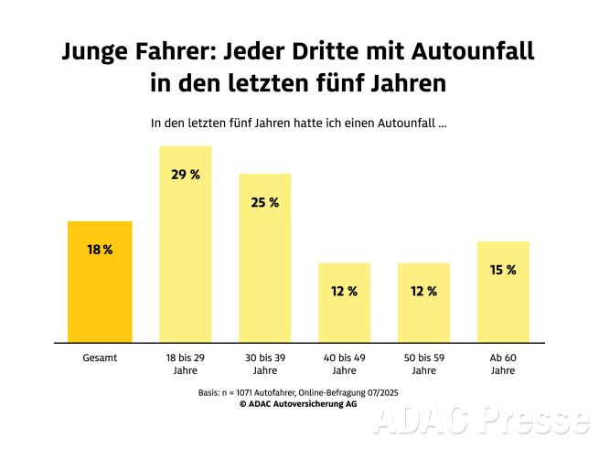 2024 wurden in Deutschland insgesamt rund 2,5 Millionen Verkehrsunfälle polizeilich erfasst. 18 Prozent aller Umfrageteilnehmer hatten nach eigenen Angaben in den letzten fünf Jahren einen Autounfall. Beim Blick aufs Alter zeigen sich allerdings deutliche Unterschiede: Während unter den jungen Fahrern zwischen 18 und 29 Jahren fast jeder Dritte (29 Prozent) in einen Unfall verwickelt war, waren es nur 12 Prozent der Fahrer zwischen 40 und 59 Jahren.