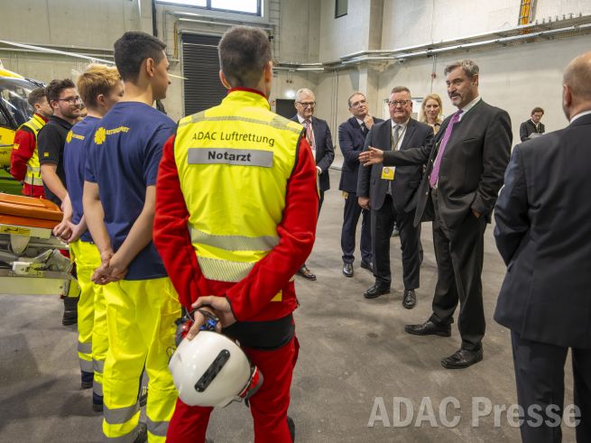 Die Einweihung fand statt vor rund 250 Vertreterinnen und Vertretern von Rettungsdienstorganisationen, Kliniken, Partnerunternehmen, Verbänden, Behörden und der Politik – darunter auch der bayerische Ministerpräsident Dr. Markus Söder als Grußwortredner: „Großer Dank an die Eliteeinheit des Rettungsdienstes! Die Engel des ADAC begleiten das ganze Leben – ob im Auto oder in der Luft. Wir sind stolz auf unsere gesamte Rettungsfamilie in Bayern. Sie sind echte Helden und immer vor Ort, um Leben zu retten. Dazu gehört viel Training und die Bereitschaft, rund um die Uhr in den Einsatz zu gehen. Das verdient höchsten Respekt und Wertschätzung. Der Freistaat steht an der Seite der Retter: mit bester Ausstattung, Vertrauen und einem Befreiungsschlag von Bürokratie. Wir halten denjenigen den Rücken frei, die für uns den Rücken hinhalten.“
