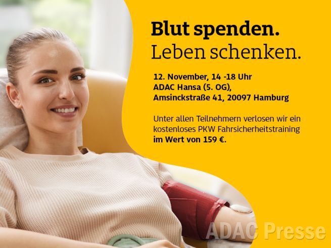 Der ADAC Hansa e.V. lädt am 12. November 2025 in Kooperation mit dem Deutschen Roten Kreuz zu einem Blutspendetermin in die Hamburger Geschäftsstelle (Amsinckstr. 41 20097 Hamburg) ein. Gespendet werden kann von 14:00 bis 18:00 Uhr.
