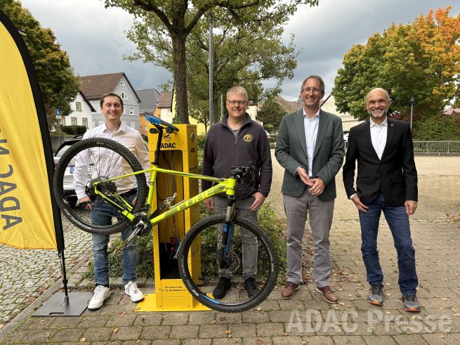 Bad Rappenau-Grombach. Sie ist auffällig gelb, ausgerüstet mit diversen Werkzeugen und bietet Fahrradfahrerinnen und Fahrradfahrern im Falle einer kleinen Panne eine unkomplizierte Hilfestellung: In Grombach, einem Stadtteil von Bad Rappenau, wurde am Dienstag eine neue ADAC Radservice-Station des ADAC Nordbaden e.V. eröffnet. Oberbürgermeister Sebastian Frei, Jan Bühn, Mobilitätsmanager beim ADAC Nordbaden, und Sven Hoßfeld, 1. Vorsitzender des ADAC Ortsclubs MSC Bad Rappenau, haben die gelbe Säule in der Ortsstraße 63 gemeinsam offiziell in Betrieb genommen. Es ist bereits die 25. Station im Gebiet des ADAC Nordbaden.