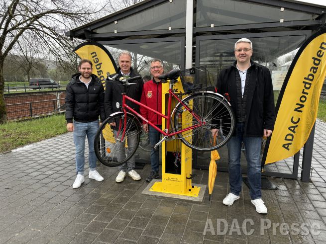 Mauer. In Mauer im Rhein-Neckar-Kreis steht sie: die 30. ADAC Radservice-Station in Nordbaden. Die gelbe Säule, die mit den wichtigsten Werkzeugen für kleinere Reparaturen am Fahrrad und einer Luftpumpe ausgerüstet ist, wurde am heutigen Mittwoch in der Bahnhofstraße direkt am Bahnhof Mauer in Betrieb genommen. Neben Bürgermeister Heiko Braun und Dr. Heino Albering, dem Vorsitzenden des ADAC Nordbaden e.V., war auch Jörg Schilling, stellvertretender Vorsitzender vom ADAC Ortsclub MSC Mauer e.V., bei der Eröffnung dabei. Die ADAC Radservice-Station steht ab sofort allen Fahrradfahrerinnen und Fahrradfahrern kostenlos und rund um die Uhr zur Verfügung – ob ADAC Mitglied oder nicht. Die Station kann darüber hinaus Abhilfe leisten bei kleinen Schäden an Kinderwagen oder Skateboards. Mit der neuen Reparatursäule des ADAC erweitert die Gemeinde auf Initiative von Bürgermeister Heiko Braun ihr Angebot für Radfahrerinnen und Radfahrer. Der Standort in der Bahnhofstraße kommt nicht nur den Pendlern zugute, die ihr Rad am Bahnhof abstellen. Sie steht auch den Radfahrerinnen und Radfahrer zur Verfügung, die von Mauer ihre Tour starten oder auf ihrer Kraichgau-Radtour durch die Gemeinde fahren.