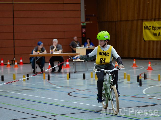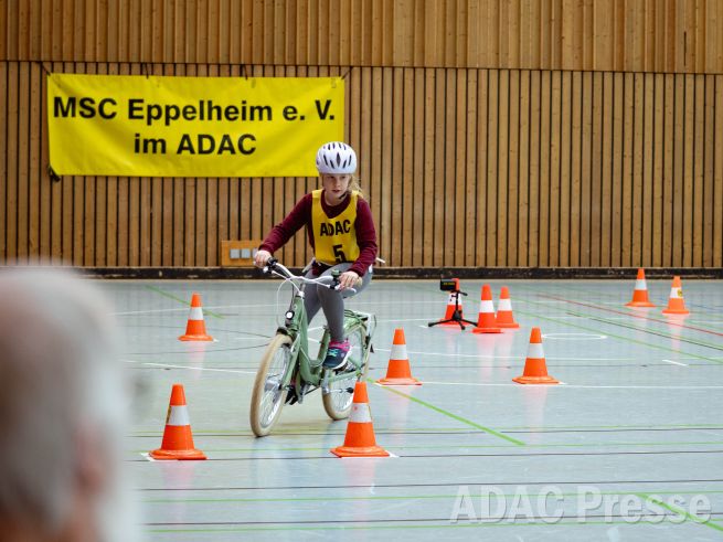 Rechts durch einen Kreisel fahren, links durch einen Kreisel fahren, einhändig lenken oder im Slalom durch Pylonen navigieren: Rund 90 junge Radlerinnen und Radler sahen sich am Sonntag, den 1. März, beim Baden-Württembergischen Finale der ADAC Jugendfahrradturniere unter anderem diesen Aufgaben gegenüber. Auf dem 200 Meter langen Final-Parcours in der Keltenhalle in Rheinstetten-Mörsch (Kreis Karlsruhe) waren höchste Konzentration und ein möglichst fehlerfreier Auftritt gefragt, um am Ende in einer der drei Altersgruppen ganz oben auf dem Treppchen zu stehen.