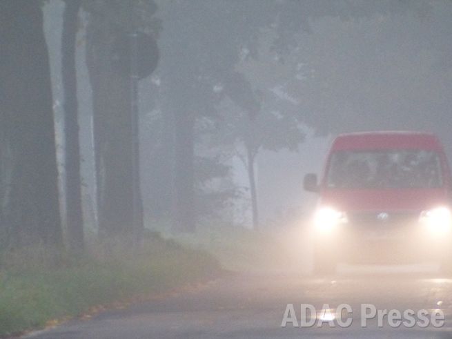 Grundsätzlich sind bei schlechter Sicht Entfernungen schwer einzuschätzen und Hindernisse werden erst spät sichtbar. Daher empfiehlt der ADAC Südbayern in der dunklen Jahreszeit: Fuß vom Gas, Abstand vergrößern und auf die richtige Beleuchtung achten. Nebelscheinwerfer dienen dazu, die Straße flach und breit auszuleuchten und sind ideal bei dichter Sicht durch Nebel, starken Regen oder Schneefall. Sie dürfen zusätzlich zum Abblendlicht oder auch allein verwendet werden. Fernlicht hingegen verschlechtert bei Nebel die Sicht, da es an den Wassertröpfchen reflektiert.