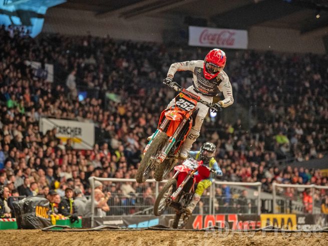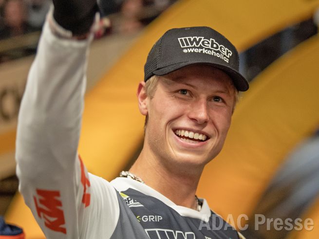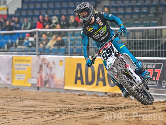 Auch Kevin Winkle (MSC Gaildorf) hat in Mattstedt trainiert – und sich dort so schwer verletzt, dass er mehrere Wochen ausfällt. Dabei wollte er den Sprung ins Hauptfeld der SX2 schaffen und hatte auf einen Auftritt vor großem Publikum gehofft. Für ihn als „Amateurfahrer“ sei es ein tolles Erlebnis am Start zu stehen, wenn es um die Wurst geht, wenn die Bässe dröhnen, die Luft in der Halle knistert und der Moderator einpeitscht. Winkle hat einen 40-Stunden-Job, trainiert nach der Büroarbeit und muss Wettkämpfe danach aussuchen, dass er am Montag wieder rechtzeitig zurück am Arbeitsplatz ist. Was in ihm steckt, hat der 29-Jährige bereits mehrfach im Motocross gezeigt, wo er drei Mal den Titel als bester Amateurfahrer Deutschlands holte.