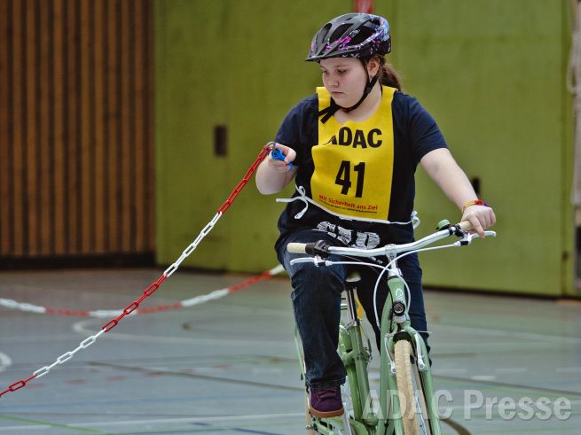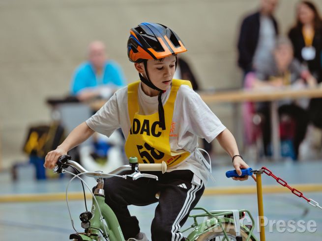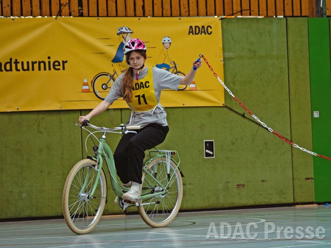 Erstmal rechts und dann links durch einen Kreisel fahren, einhändig lenken und im Slalom durch Pylonen navigieren: Über 90 junge Radlerinnen und Radler sahen sich am Sonntag, den 1. März, beim baden-württembergischen Finale des ADAC Fahrradturniers unter anderem diesen herausfordernden Aufgaben gegenüber. Auf dem 200 Meter langen Final-Parcours in der Keltenhalle in Rheinstetten-Mörsch (Kreis Karlsruhe) waren also höchste Konzentration und ein möglichst fehlerfreier Auftritt gefragt, um am Ende in einer der drei Altersgruppen ganz oben auf dem Treppchen zu stehen. Die Jungen und Mädchen zwischen 8 und 15 Jahren hatten sich im zurückliegenden Jahr gegen rund 6.800 junge Radfahrerinnen und Radfahrer durchgesetzt, die an den ADAC Fahrradturnieren in ganz Baden-Württemberg teilgenommen haben. Vor den Augen zahlreicher stolzer Eltern und Zuschauer kam es nun zum großen Finale mit vielen strahlenden Gesichtern. In diesem Jahr richtete der ADAC Nordbaden e.V. mit tatkräftiger ehrenamtlicher Unterstützung das Landesfinale aus.