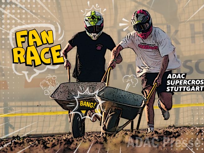 Dieses Jahr darf sich das Publikum beim ADAC Supercross Stuttgart auf eine besondere Premiere freuen. Beim erstmals ausgetragenen „SX Fan Race“ treten acht Teams mit je drei Personen gleichzeitig in einem aufregenden Staffellauf gegeneinander an. Die Herausforderung: Drei abwechslungsreiche Disziplinen müssen in schneller Folge gemeistert werden.