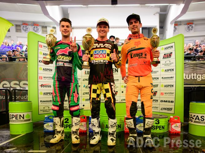 Erstmals wurde beim ADAC Supercross Stuttgart die Next (Generation)-Klasse ausgetragen. Das neu eingeführte Format für deutsche Fahrer zwischen 13 und 25 Jahren dient als Sprungbrett für die SX2 und soll den jungen Piloten wertvolle Wettkampferfahrung verschaffen. Nach einem spannenden Rennen siegte Leo Paukovic vor Emil-Manuel Buccioni und Julian Spatz. Die Entscheidung fiel in Runde fünf, als Paukovic den bis dahin in Führung liegenden Pius Bergmann mit einem Check abdrängte. „Wir sind beim Supercross, da wird hart gefahren. Ich hoffe aber, dass es ihm gut geht“, schilderte Paukovic die Szene. Christian Forderer aus Leutkirch fuhr zeitweise in der Spitzengruppe mit und erreichte einen starken vierten Platz. Der Filderstädter Nils Weinmann verpasste knapp das Finale.