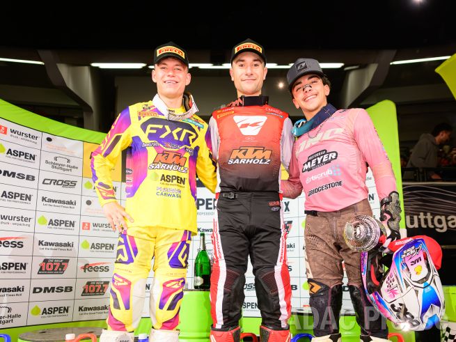 Im Finale der SX2 feierte Calvin Fonvieille nach einer sehr starken Vorstellung einen ungefährdeten Sieg. Der Franzose war als Gewinner des ADAC SX Cup 24/25 als Top-Favorit ins Rennen gegangen. „Ich fühle mich immer sehr willkommen hier, die Fans sind super. Es fühlt sich gut an, mit einem Sieg zu starten“, sagte Fonvieille. Hinter ihm kam mit Jules Pietre ebenfalls ein Franzose ins Ziel. Die große Überraschung aus deutscher Sicht war Noah Ludwig auf dem dritten Platz. Seine Leistung ist deshalb bemerkenswert, da er 2017 das letzte Mal Supercross in der Halle gefahren war. „Im Waschbrett hatte ich meine Probleme und habe jede Runde gebetet, dass ich durchkomme. Direkt am ersten Tag auf dem Podium zu sein ist mega“, freute sich Ludwig.